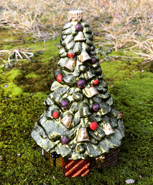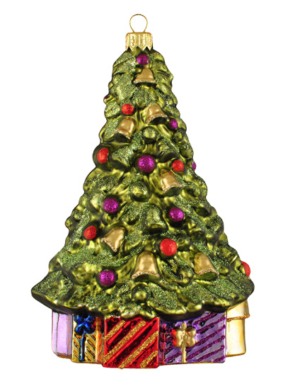 Choinka z prezentami #F499 Szklana Ozdoba Choinkowa. Wydmuchiwana i dekorowana ręcznie. Wysokość 16cm.