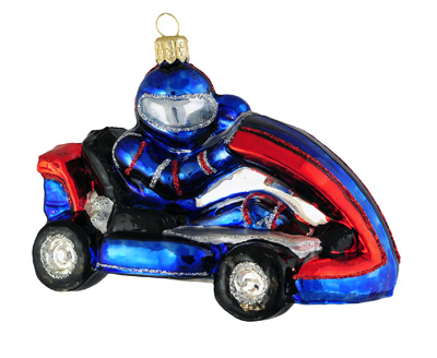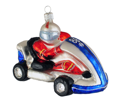 Gokart#F Szklana Ozdoba Choinkowa. Wydmuchiwana i dekorowana ręcznie. Wysokość 8,5cm Szerokość  12,5cm