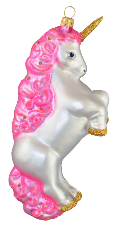 Jednorożec #F603 Szklana Ozdoba Choinkowa. Wydmuchiwana i dekorowana ręcznie. Wysokość 15,5cm