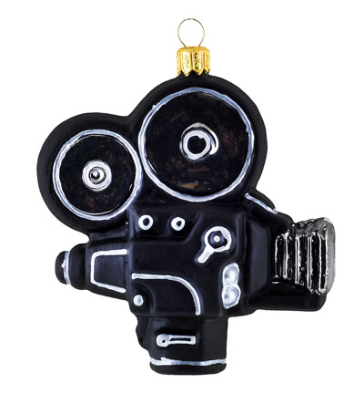 Kamera #F463 Szklana Ozdoba Choinkowa. Wydmuchiwana i dekorowana ręcznie. Wysokość 10,5 cm