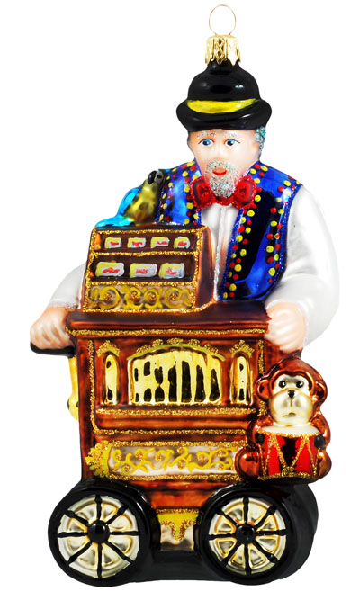 Kataryniarz #F427 Szklana Ozdoba Choinkowa. Wydmuchiwana i dekorowana ręcznie. Wysokość 15,5 cm
