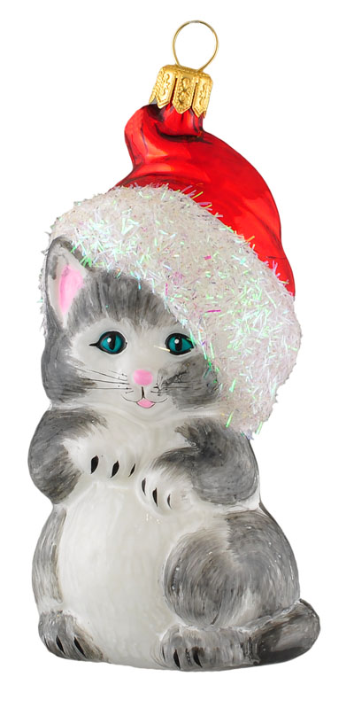 Kotek # F 400 Szklana Ozdoba Choinkowa. Wydmuchiwana i dekorowana ręcznie. Wysokość 11,5 cm.
