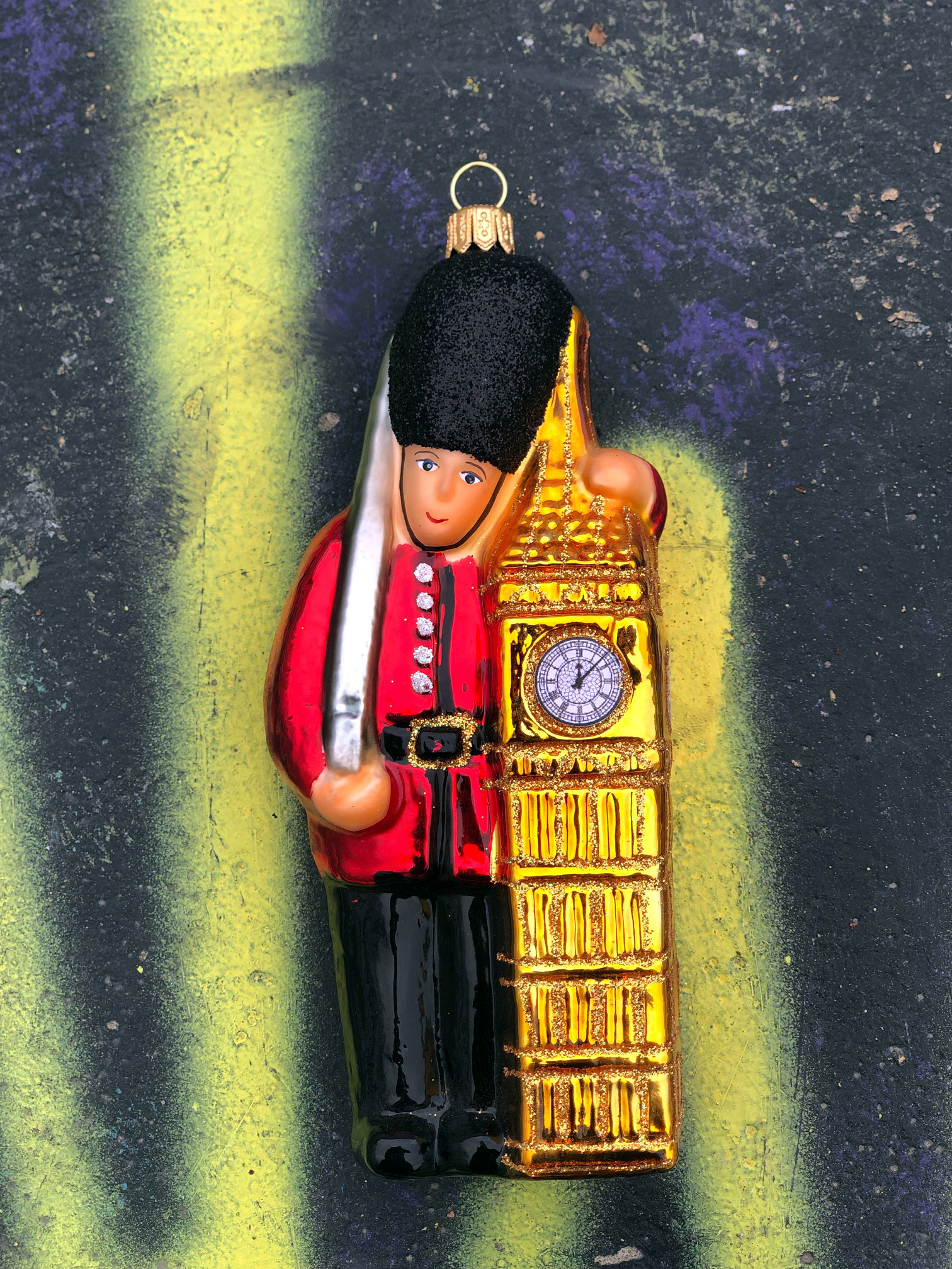 Królewski strażnik z Big Benem # F 572 Szklana Ozdoba Choinkowa. Wydmuchiwana i dekorowana ręcznie. Wysokość 14,5 cm.