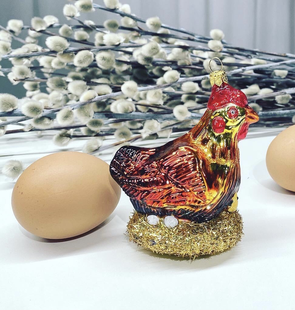 Kurka # F129 Szklana Ozdoba Choinkowa. Wydmuchiwana i dekorowana ręcznie. Wysokość 9 cm