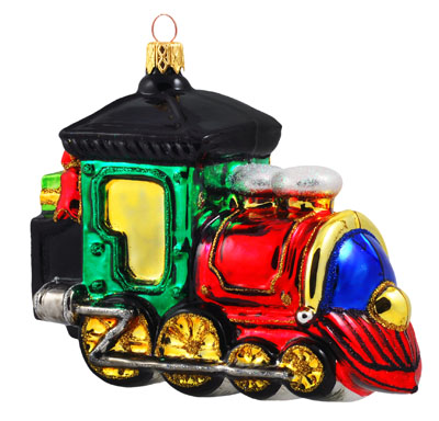 Lokomotywa mała #  F333 Szklana Ozdoba Choinkowa. Wydmuchiwana i dekorowana ręcznie. Wysokość 12  cm.