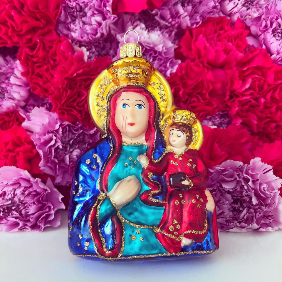 Madonna#F033 Szklana Ozdoba Choinkowa. Wydmuchiwana i dekorowana ręcznie. Wysokość 11 cm