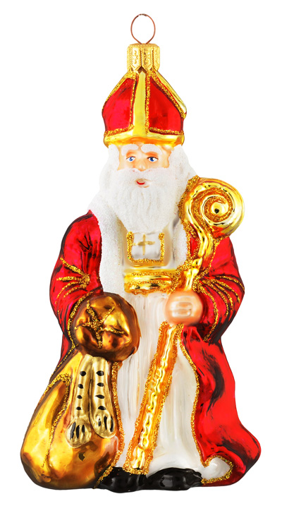 Mikołaj biskup#F469 Szklana Ozdoba Choinkowa. Wydmuchiwana i dekorowana ręcznie. Wysokość 13,5 cm
