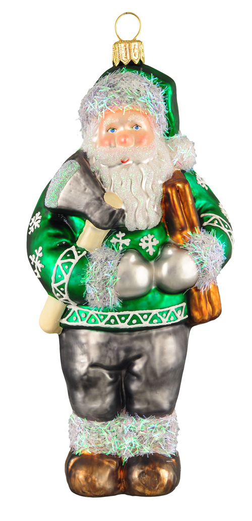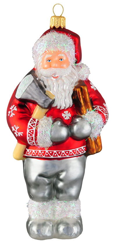 Mikołaj drwal # F524 Szklana Ozdoba Choinkowa. Wydmuchiwana i dekorowana ręcznie. Wysokość 15 cm