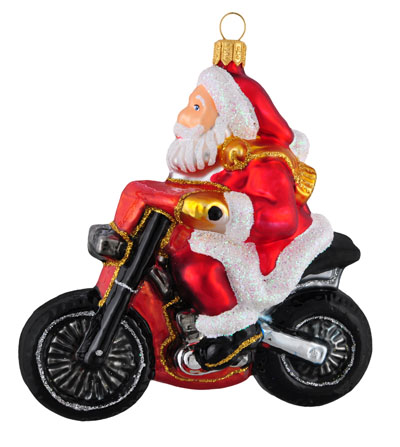 Mikołaj i motocross#F491 Szklana Ozdoba Choinkowa. Wydmuchiwana i dekorowana ręcznie. Wysokość 12 cm