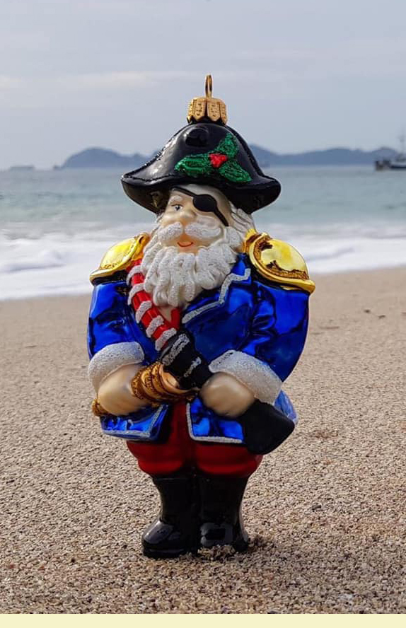 Mikołaj piratF437 Szklana Ozdoba Choinkowa. Wydmuchiwana i dekorowana ręcznie. Wysokość 14,5 cm.