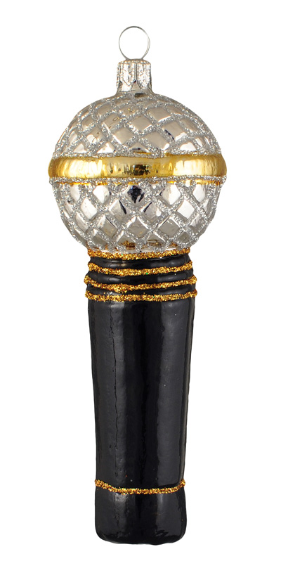 Mikrofon  # F662 Szklana Ozdoba Choinkowa. Wydmuchiwana i dekorowana ręcznie. Wysokość  12 cm.
