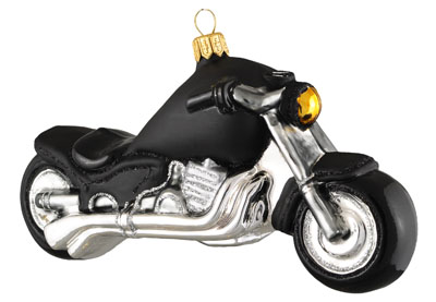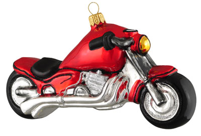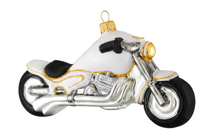 Motocykl # F359 Szklana Ozdoba Choinkowa. Wydmuchiwana i dekorowana ręcznie. Wysokość 9 cm.
