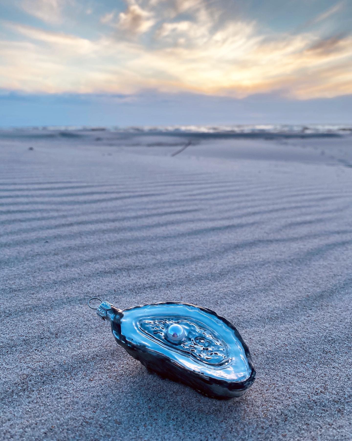 Ostryga z  perłą # F 667 Szklana Ozdoba Choinkowa. Wydmuchiwana i dekorowana ręcznie. Wysokość 8,5 cm.