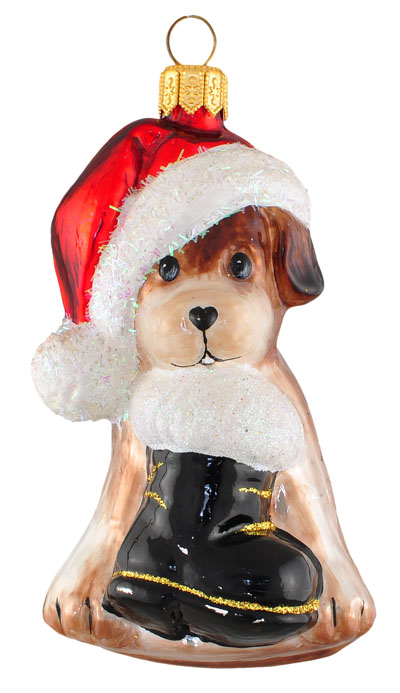 Piesek #F402B2 Szklana Ozdoba Choinkowa. Wydmuchiwana i dekorowana ręcznie. Wysokość 10 cm.