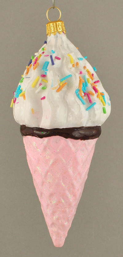 Rożek # F 651 Szklana Ozdoba Choinkowa. Wydmuchiwana i dekorowana ręcznie. Wysokość 12 cm.
