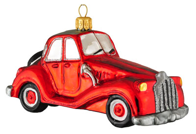 Samochód retro # F537A Szklana Ozdoba Choinkowa. Wydmuchiwana i dekorowana ręcznie. Wysokość 6,5 cm.