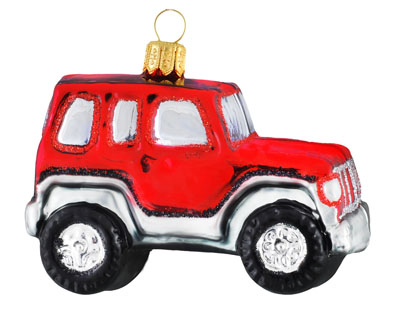 Samochód terenowy # F 467 Szklana Ozdoba Choinkowa. Wydmuchiwana i dekorowana ręcznie. Wysokość 6,5 cm.