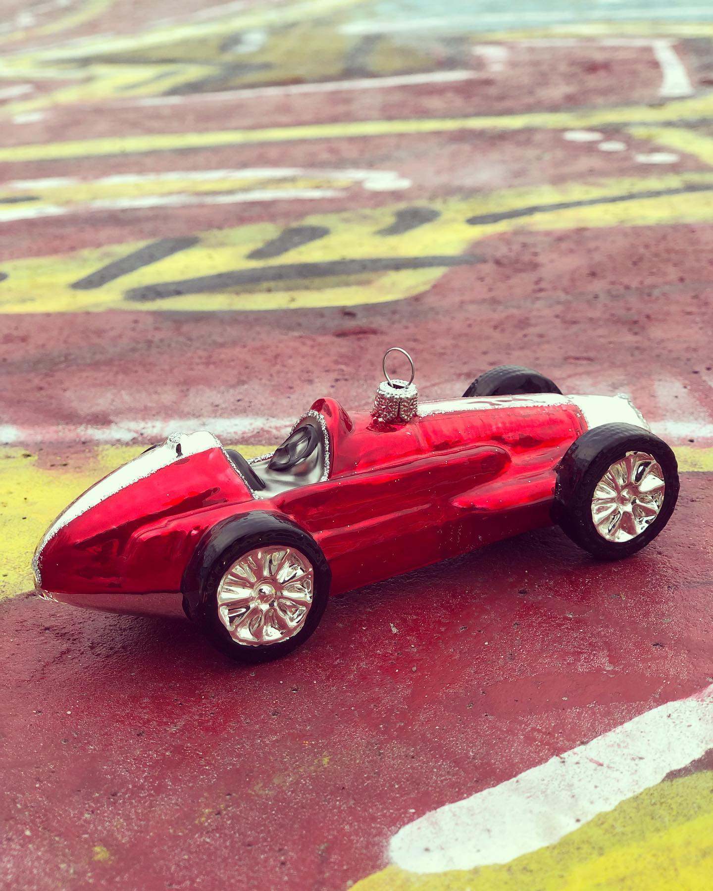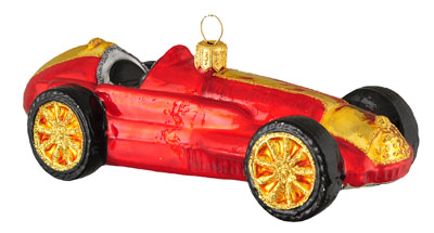 Samochód wyścigowy # F549 Szklana Ozdoba Choinkowa. Wydmuchiwana i dekorowana ręcznie. Wysokość 5 cm.