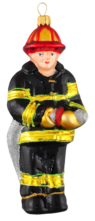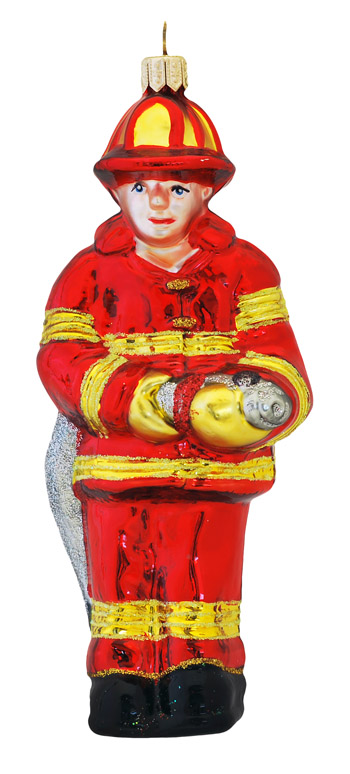Strażak # F250 Szklana Ozdoba Choinkowa. Wydmuchiwana i dekorowana ręcznie. Wysokość 14 cm.