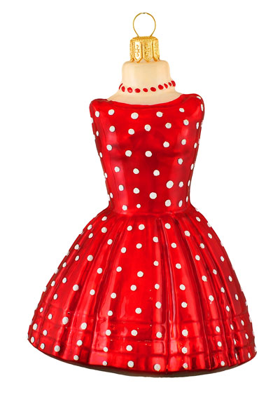 Sukienka #F456 szklana ozdoba choinkowa. Wydmuchiwana i dekorowana ręcznie. Wysokość 11,5 cm.