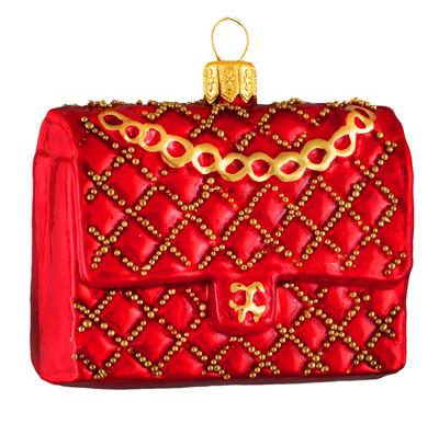 Torebka # F 457R Szklana Ozdoba Choinkowa. Wydmuchiwana i dekorowana ręcznie. Wysokość 6 cm.
