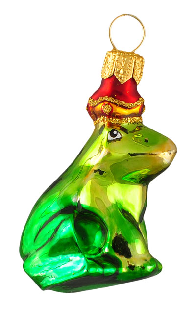 Żabka # F 502 Szklana Ozdoba Choinkowa. Wydmuchiwana i dekorowana ręcznie. Wysokość 8 cm.